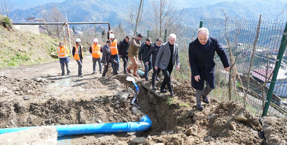 Rize Belediye Başkanı Rahmi Metin, Başkan Yardımcısı Muhittin Aydın Bilsel ve ilgili birim amirleriyle birlikte, Dünya Bankası tarafından sağlanan 37 milyon Euro tutarındaki krediyle yürütülen dev içme suyu projesi çalışmalarını yerinde inceledi.